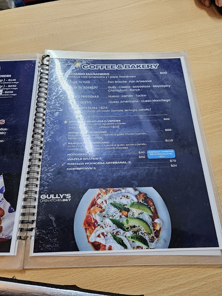 While Gullys 24/7 shines in its food and service, some customers noted a few areas for improvement, such as the speed during busy hours and the lack of entertainment options. However, many, like Ricardo Gutierrez Rios, appreciate the quick service and warm ambiance.